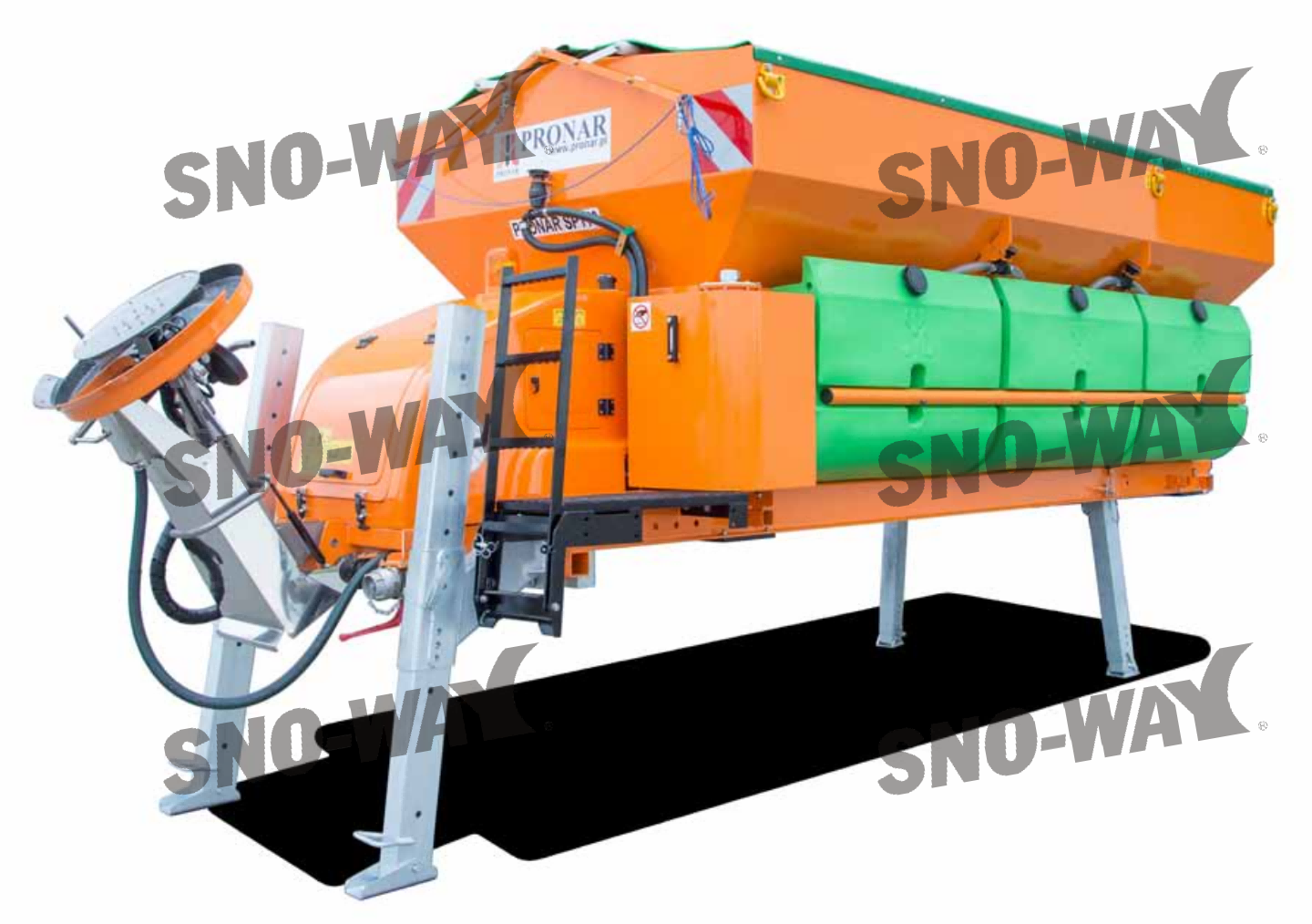 PRONAR系列撒布机在冬季道路保养工作中可以用来播撒混合物(砂、盐)和化工产品(氯化钠、氯化钙、氯化镁、卤水)。 料箱的容积可以根据车型的不同进行调整。特点: