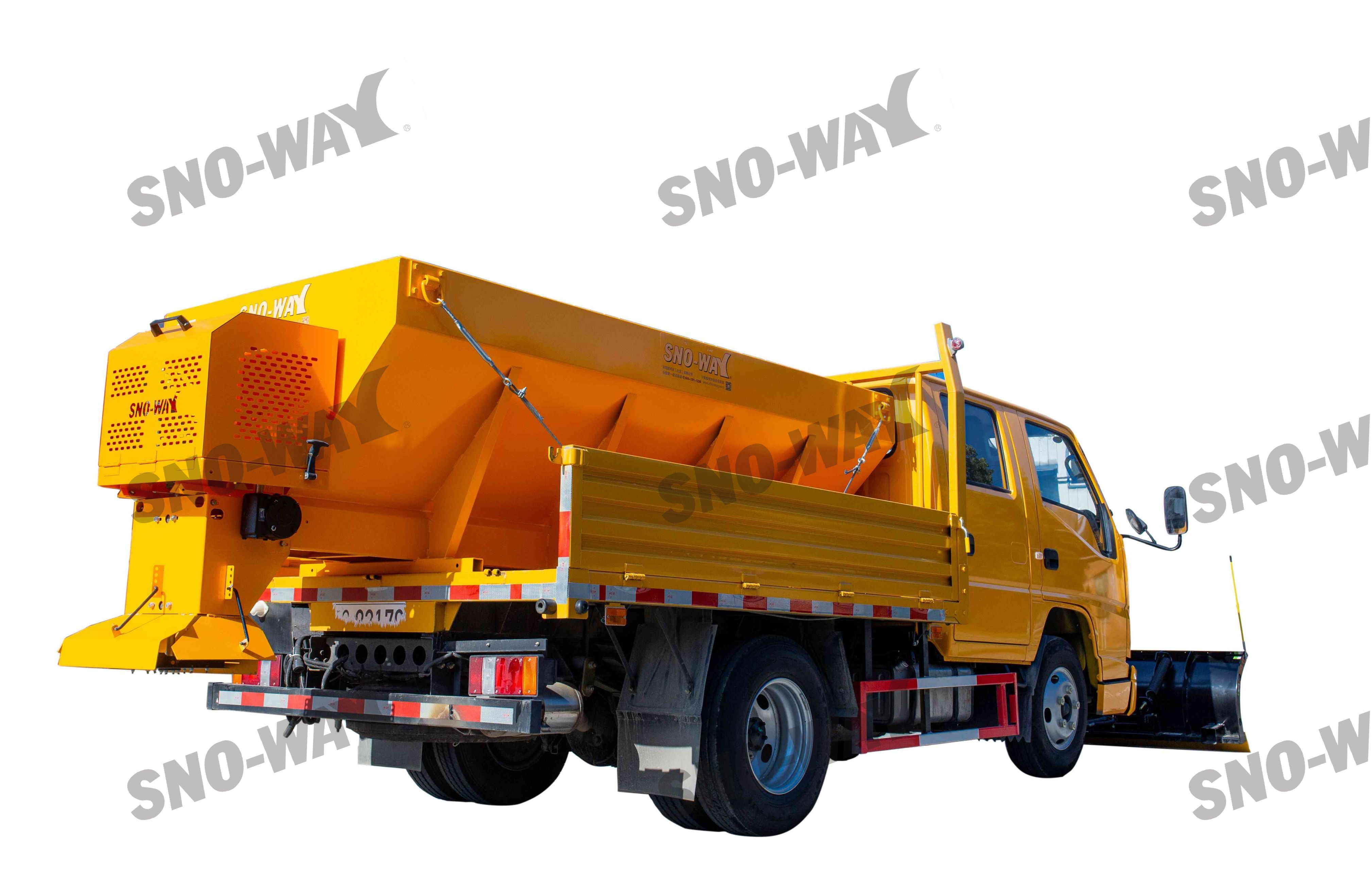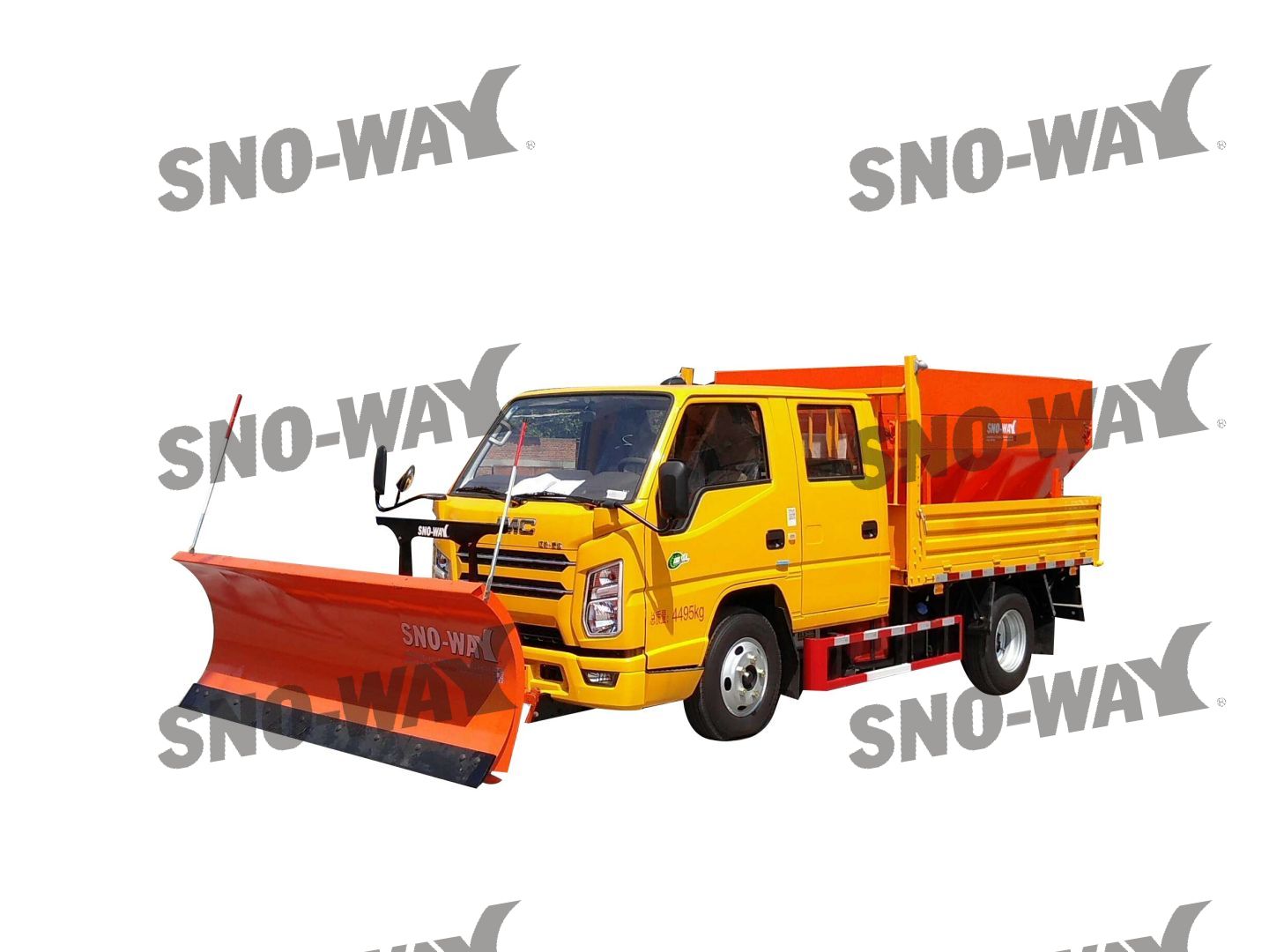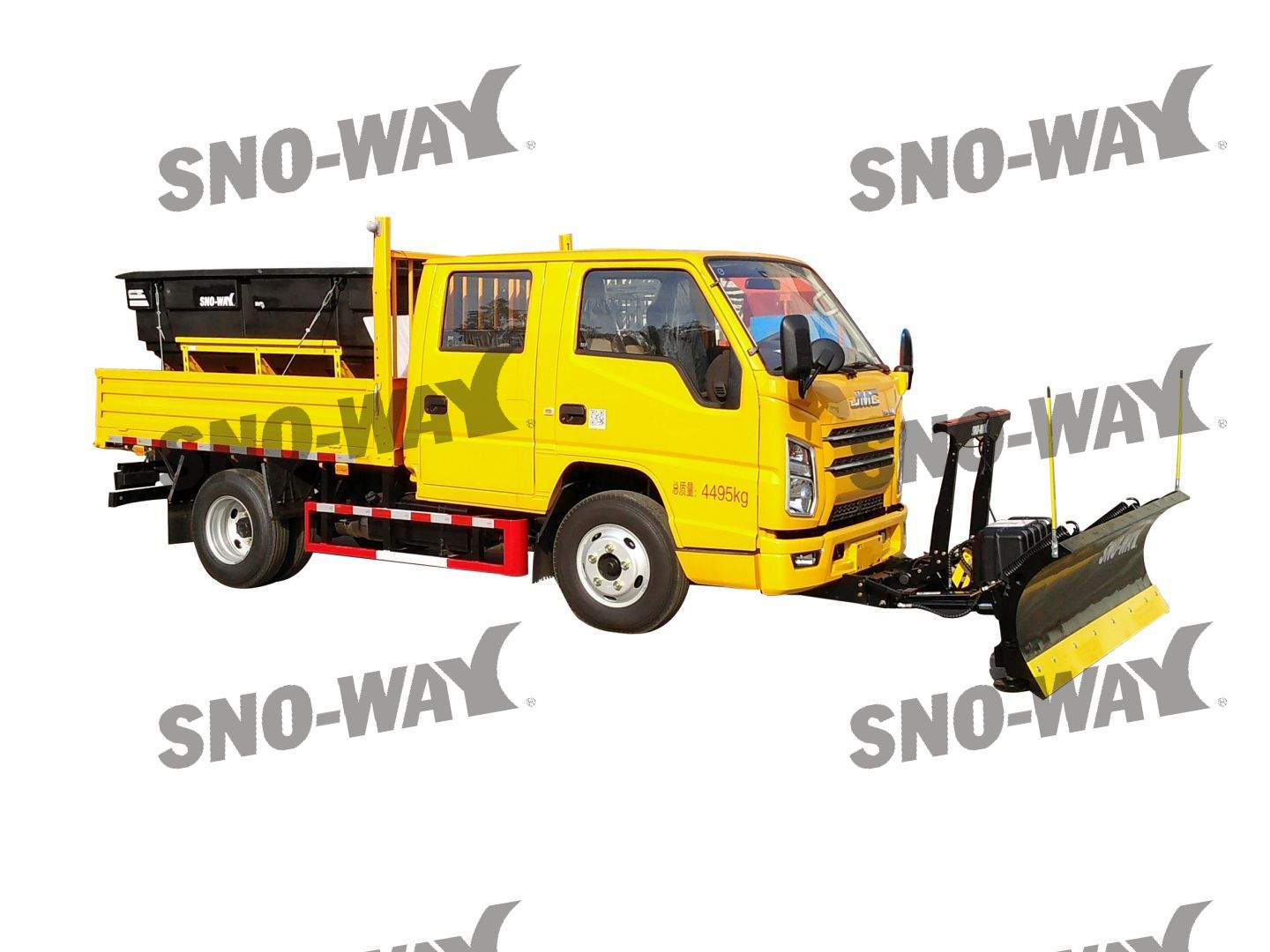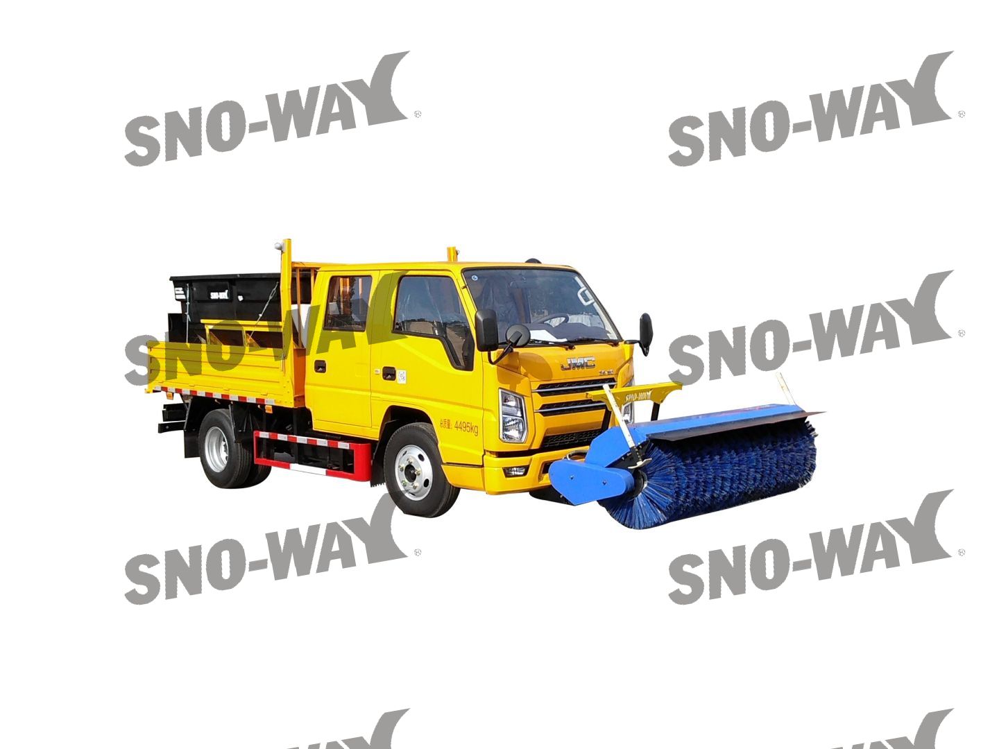思诺威生产的新一代多功能轻型除雪车PFT5042TCX6选用江铃国六系列柴油轻卡底盘(双排座),车前部可装配PU轻型滚刷或26、32系列除雪铲,后部可装配SSV/DEV系列轻型撒布机或RVB系列纯电动融雪剂撒布机。整车集推雪、扫雪、撒布功能于一体,适用于城市主辅干道,公路、大型园区的除雪作业。