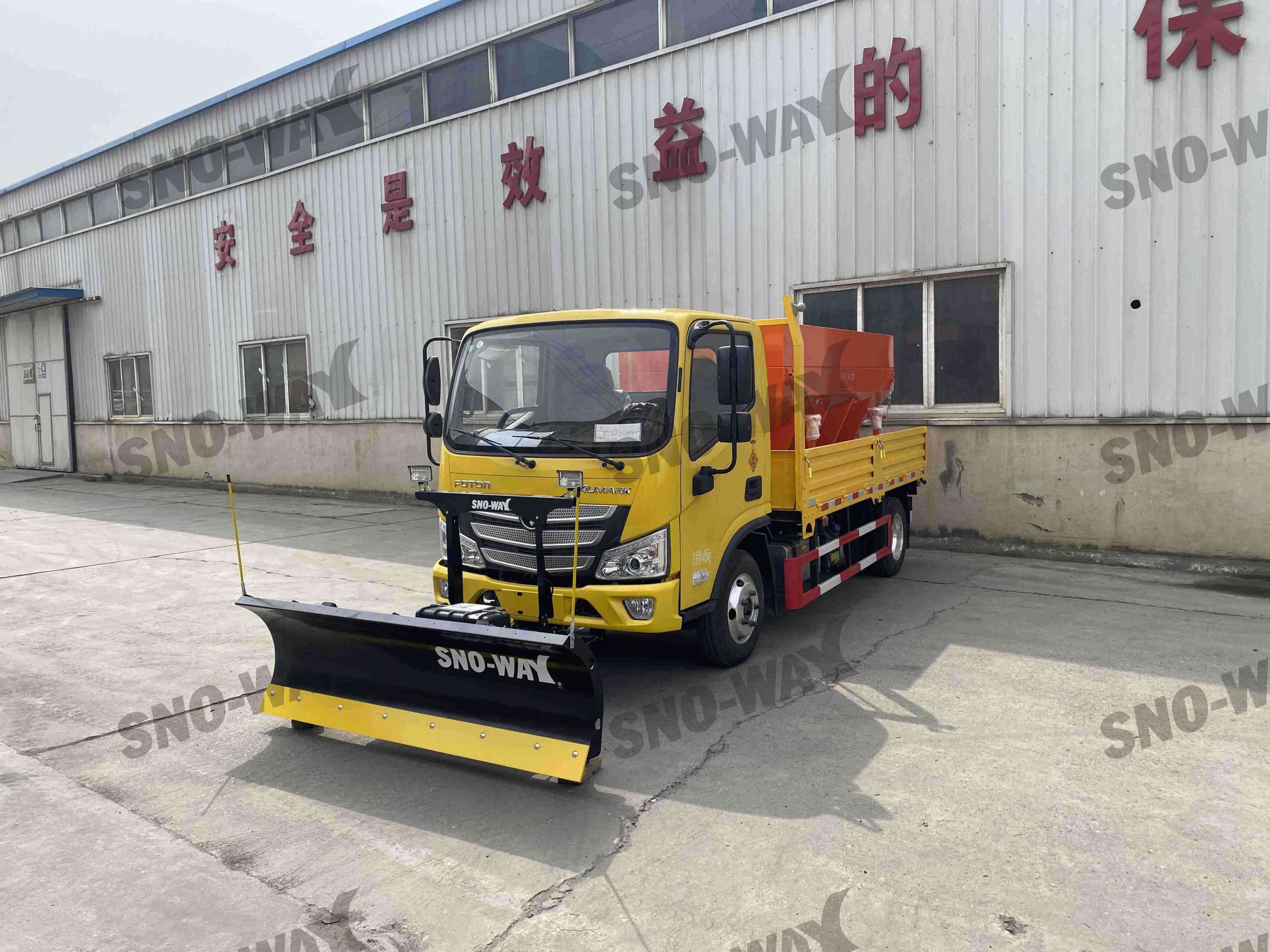 思诺威生产的新一代多功能轻型除雪车PFT5043TCX6选用欧马可单排驾驶室,车前部可装配PU轻型滚刷或26、32系列除雪铲,后部可装配SSV/DEV系列轻型撒布机或RVB系列纯电动融雪剂撒布机。整车集推雪、扫雪、撒布功能于一体,适用于城市主辅干道,公路、大型园区的除雪作业。