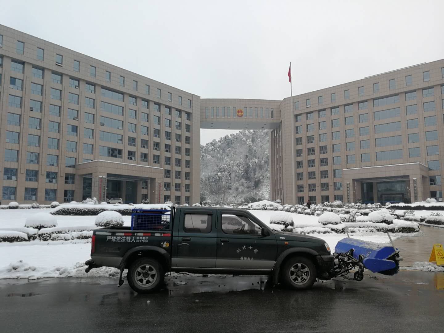 由于十堰市的除雪设备保有量有限,作为一个具有社会责任感的企业,公司领导随即决定派出公司的天锦除雪车、皮卡除雪车、小型抛雪机、小型扫雪机兵分两路进行义务除雪。公司的义务举动,得到了十堰市政府、十堰开发区管委会主要领导的称赞和支持,随后应相关部门的请求,对更多的道路和工业园区进行除雪。截止1月5日下午,东风斯诺威团队配合十堰市环卫、市政的除雪作业车辆,保障了主要道路畅通。