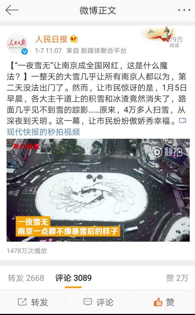 上图是人民日报对南京除雪的肯定,这里除了可爱的环卫工人、机关单位人员的辛苦努力外,机械化实时除雪起到了关键作用。其中,东风SNO-WAY的除雪车辆和设备就活跃在南京的大街小巷。