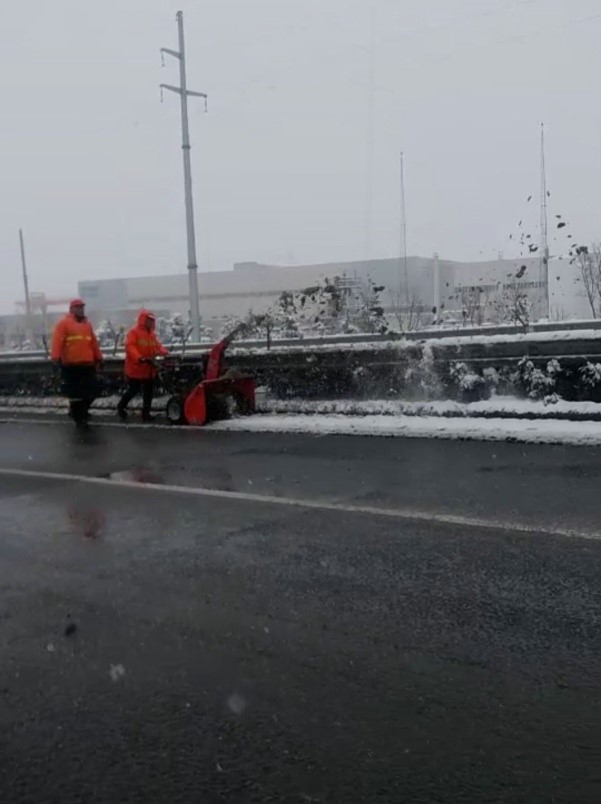 同时,我公司十堰工厂的员工及各地驻外的客服工程师,坚持岗位,通宵加班轮岗,一是除雪设备的安装,保障除雪设备及时投入使用;二是组织生产,保障除雪设备备货充足,满足各地的需求。