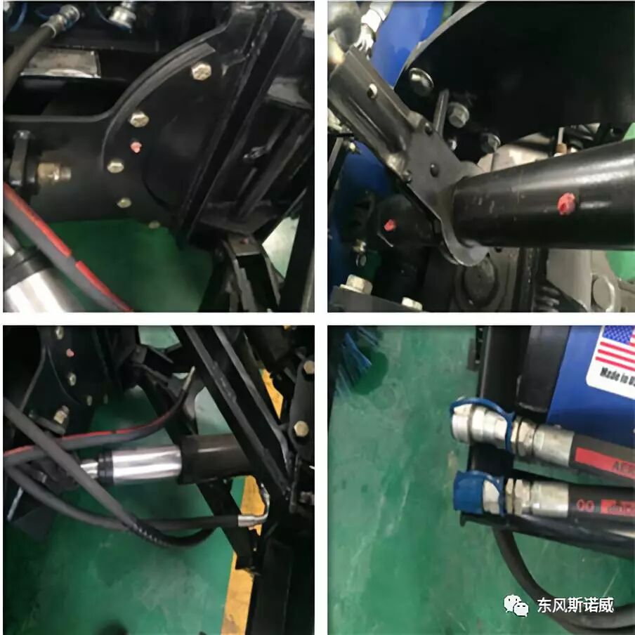 2.检查零部件。在设备清理过程中,要注意检查各连接部位的螺栓、液压油管、快接防尘帽、滚刷支撑部件等是否有松动或丢失,若出现此类情况,应及时将设备出现的故障及丢失的部件反馈给生产厂家。同时,松动的部位要及时紧固,以免造成更大的损失。